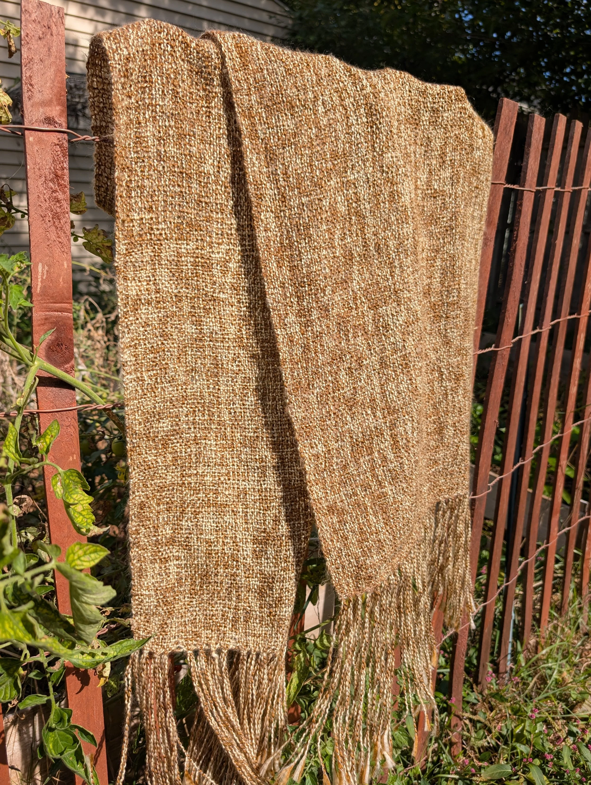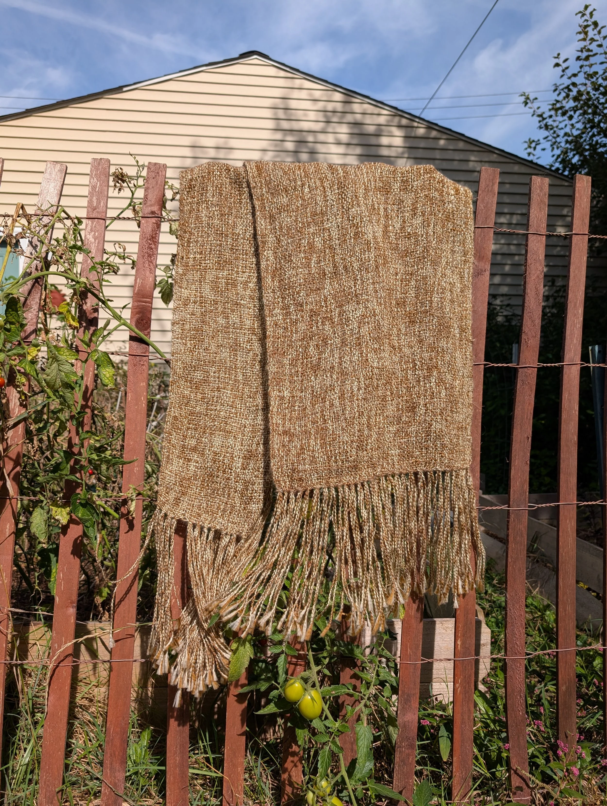 The beautiful warm, orangey/yellow yarn used in this weaving gives it the name Goldenrod- a common sighting in Ohio during the end of summer/early fall. Created on my rigid heddle loom, this is a one of a kind piece.